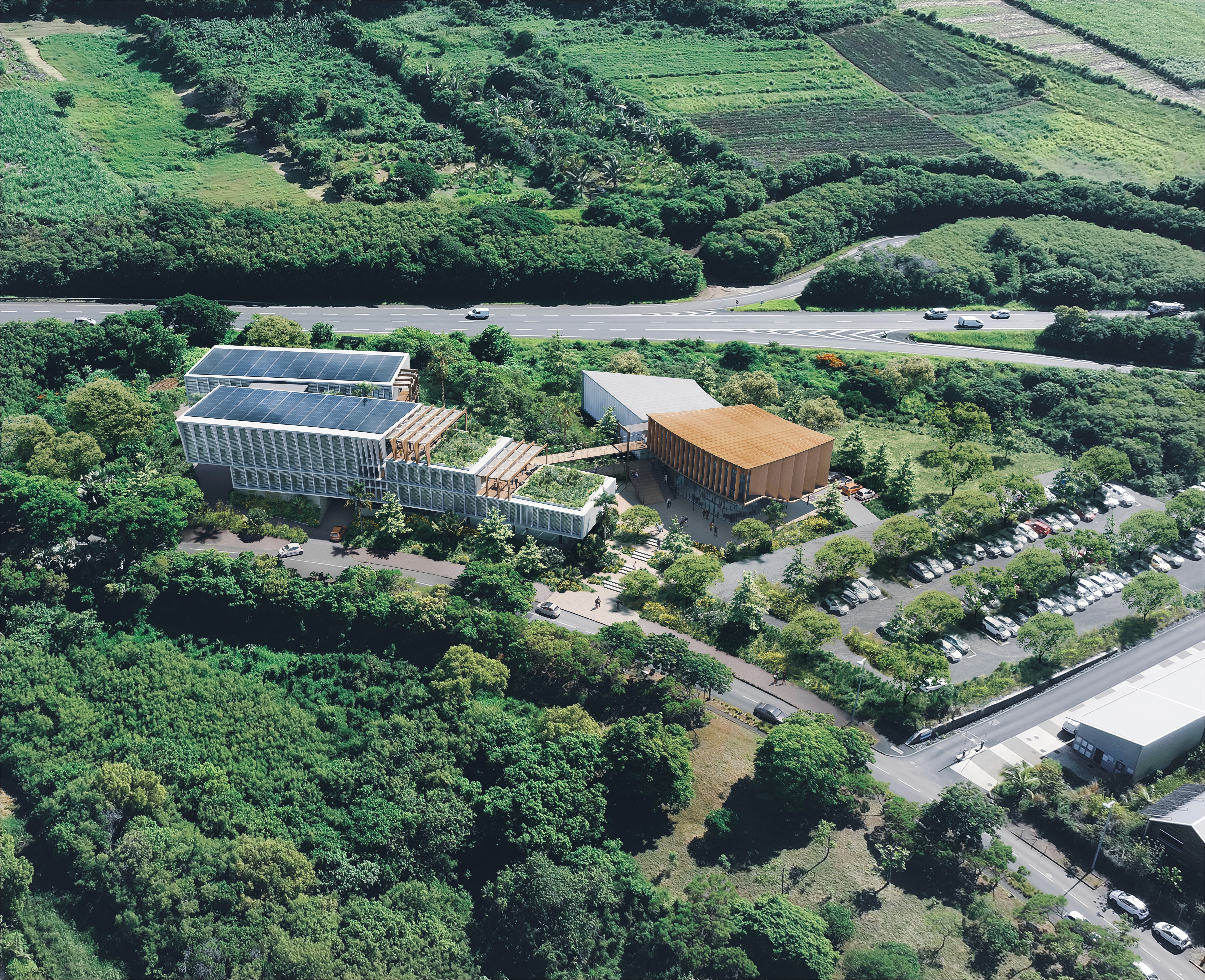 Direction artistique et production des pièces graphiques pour le rendus de concours du CSSOI - CHU Réunion réalisé avec l'agence Patriarche Architecture.